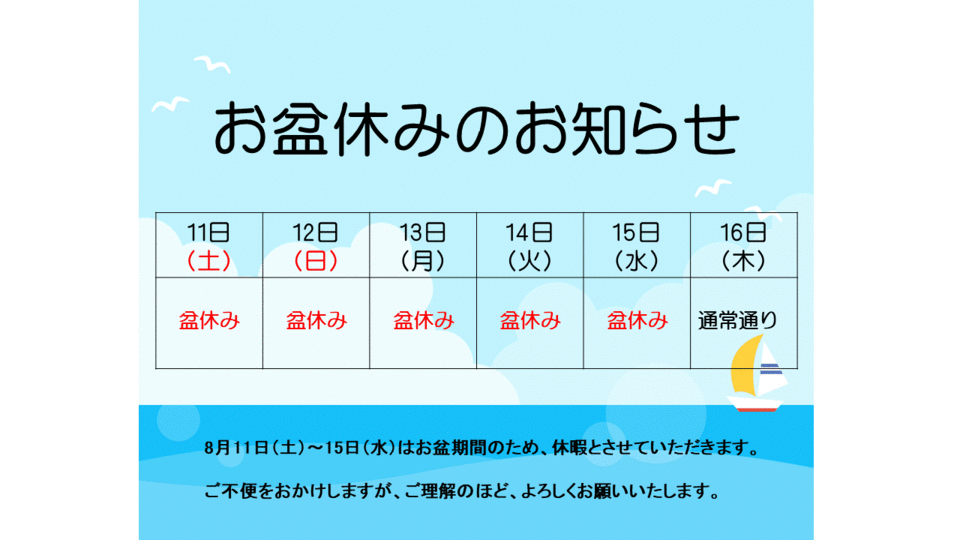 夏季休業のお知らせ お知らせ みたお鍼灸整骨院 医療マッサージ 鍼灸治療 カイロプラクティック